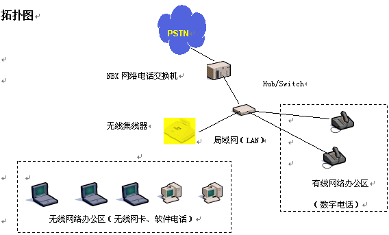 隨著信息時(shí)代的來臨,電話、電腦成了辦公領(lǐng)域的重要工具,人們?cè)谵k公室通過計(jì)算機(jī)網(wǎng)絡(luò)共享數(shù)據(jù)資源、傳遞數(shù)據(jù)信息,彼此間通過電話言語溝通。在人們享受到高科技帶來的高效率的同時(shí),也感到一些不便,例如計(jì)算機(jī)網(wǎng)絡(luò)、電話網(wǎng)都需要單獨(dú)鋪設(shè)專用的線路,線路的變更往往是讓人心煩的事情。隨著各公司推出無線局域網(wǎng)絡(luò)解決方案(AirConnect)和NBX網(wǎng)絡(luò)電話交換機(jī)平臺(tái)的推出,通過無線局域網(wǎng)絡(luò)技術(shù),語音、數(shù)據(jù)兩網(wǎng)合一技術(shù),將電腦、電話機(jī)合二為一,同時(shí)從線路的束縛中解放出來。人們?cè)僖膊挥脫?dān)心布線問題,可以隨處移動(dòng)辦公,享受無線網(wǎng)絡(luò)、無線話音,大大提高人們的辦公效率。