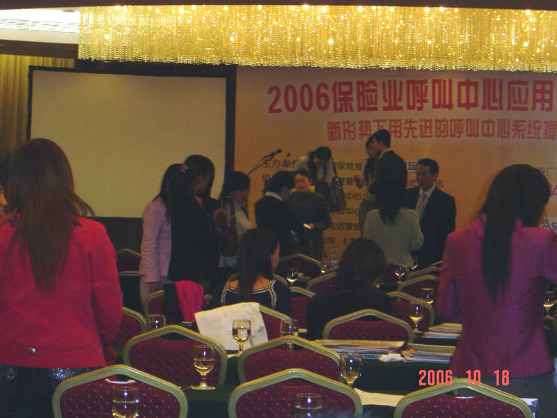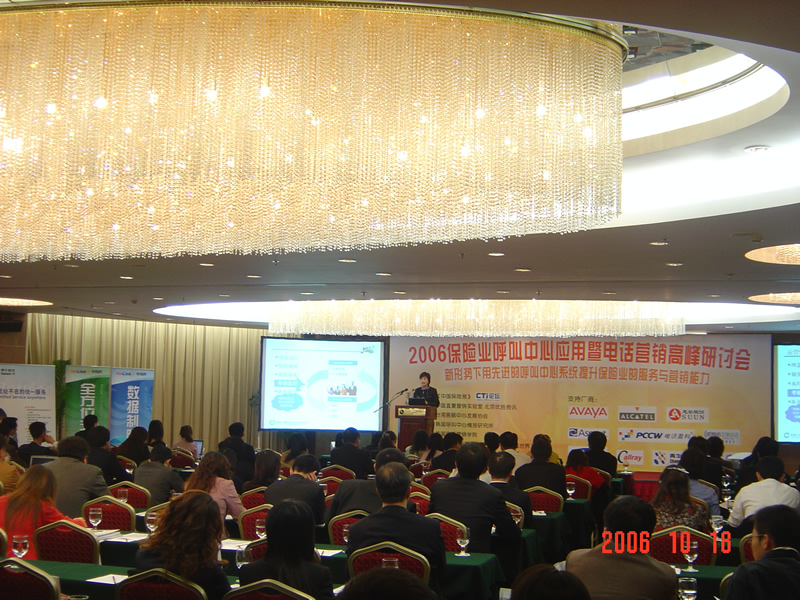 。。2006年10月18日,2006保險業(yè)呼叫中心應(yīng)用暨電話營銷高峰研討會在北京天鴻科園大酒店隆重召開,以下是會議現(xiàn)場的相關(guān)圖片報道:
