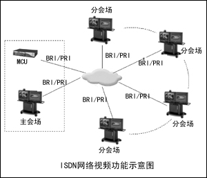 ISDN網(wǎng)絡連接:借助思科IP視頻會議系統(tǒng),目前廣泛使用的ISDN通信網(wǎng)可以與視頻終端ISDN PRI或BRI接口相連,通過撥號與任何一個會場進行隨時隨地的連接。另外,采用ISDN線路還可以起到網(wǎng)絡備份和延伸的作用。ISDN線路的建設非常方便,各分會場可以從電信部門申請ISDN線路,并在1至2周內(nèi)完成線路到位。
