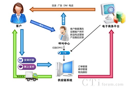 電子商務(wù)行業(yè)呼叫中心解決方案是集呼叫中心基礎(chǔ)設(shè)施和電子商務(wù)公司核心業(yè)務(wù)流程為一體的解決方案。系統(tǒng)提供了電子商務(wù)行業(yè)的全部核心業(yè)務(wù)流程,如360度的客服關(guān)系和客戶服務(wù),優(yōu)化的供應(yīng)鏈管理,全程自動(dòng)的物流跟蹤,高效的營銷工具。