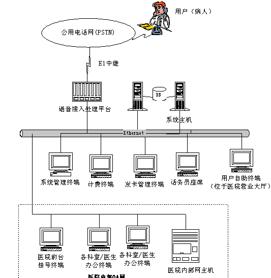 主機是一臺和呼叫中心其他系統(tǒng)以及醫(yī)院內部網聯(lián)網的PC 機,運行特定的軟件模塊。