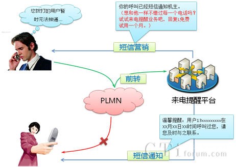 來(lái)電提醒業(yè)務(wù)是指被叫用戶在忙、無(wú)人接聽(tīng)、不在服務(wù)區(qū)、關(guān)機(jī)等狀態(tài)下,使用來(lái)電提醒功能,享受到語(yǔ)音信箱、機(jī)主留言及機(jī)主特定留言等個(gè)性化和人性化的提醒服務(wù),其有著傳統(tǒng)通信無(wú)可比擬的優(yōu)點(diǎn)。