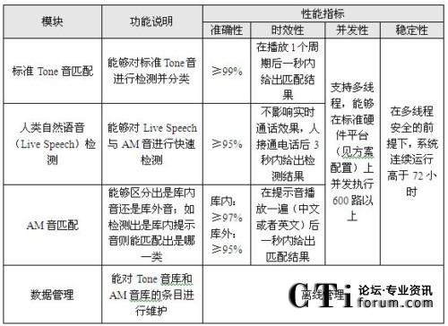 圖中,Tone音匹配采用模式匹配方法,可以實(shí)現(xiàn)對振鈴音,忙音,空號,不可達(dá)音等100多種標(biāo)準(zhǔn)提示音的識別。AM(Answering Machine)音匹配主要負(fù)責(zé)識別傳真機(jī)、自動答錄機(jī)等機(jī)器語音,同樣采用模式匹配方法,將收到的語音與標(biāo)準(zhǔn)樣本庫進(jìn)行比對。人類自然語音檢測的功能主要通過人真實(shí)聲音的檢測,來判斷是否需要進(jìn)行語音匹配。