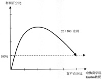 對客戶群的分析,經(jīng)濟理論界有一個著名的80-20理論,即在一個企業(yè)中,通常是20%的客戶貢獻了80%的利潤,而有可能40%的客戶加起來的利潤還不到1%;而依照20-300理論,實際上20%的客戶,貢獻著企業(yè)300%的利潤,言外之意就是說,剩下的客戶可能是“吃”掉利潤的人群。但是對于剩下的80%客戶,銀行可能要花費更多的人力、物力去提供服務(wù),所以實際上銀行或企業(yè)很有可能在做虧本買賣。因此,分析客戶群,調(diào)配資源非常重要(如下圖所示)。