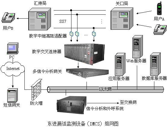 東進(jìn)漏話監(jiān)測(cè)設(shè)備(DMCS)采用大容量、高穩(wěn)定的電信級(jí)的基礎(chǔ)平臺(tái),其中數(shù)字交叉連接器和多信令分析網(wǎng)關(guān),都采用標(biāo)準(zhǔn)的19英寸機(jī)架設(shè)計(jì),便于客戶的安裝和使用,設(shè)備單平臺(tái)最大可同時(shí)接入64個(gè)E1,平臺(tái)利用東進(jìn)公司核心的信令采集技術(shù)、語音媒體處理和交換技術(shù),提供全程中國(guó)七號(hào)信令,支持ISUP信令方式,具有較穩(wěn)定的信令可靠性和接續(xù)速度。平臺(tái)采用與短信網(wǎng)關(guān)連接的解決方案,支持與SMC和SMG兩種連接方式。