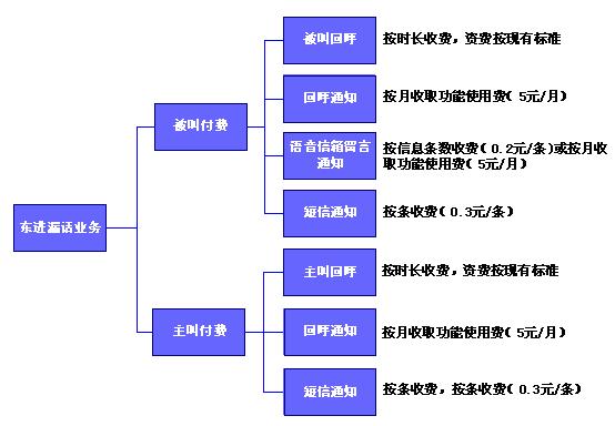 東進(jìn)固話漏話業(yè)務(wù)可根據(jù)業(yè)務(wù)的漏話提醒方式不同分別計(jì)費(fèi)或組合計(jì)費(fèi)。
