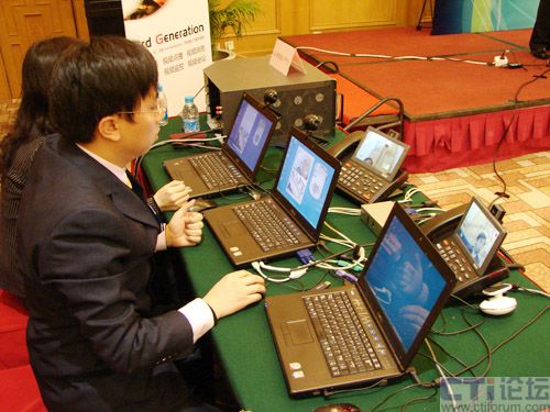 貫穿此次活動的一大重頭——3G環(huán)境下視頻業(yè)務(wù)現(xiàn)場演示,被認(rèn)為是產(chǎn)業(yè)融合創(chuàng)新從理論思路到實踐的跨越。在本次活動中,現(xiàn)場展示了折扣搜尋店、移動保安和電話QQ面對面等幾項基于視頻特性的創(chuàng)新應(yīng)用,分別演示了IVVR、視頻監(jiān)控和視頻會議這3個功能。演示業(yè)務(wù)顯示出Keygoe多媒體交換機(jī)的視頻特性,以及在3G增值業(yè)務(wù)中的潛在實力。