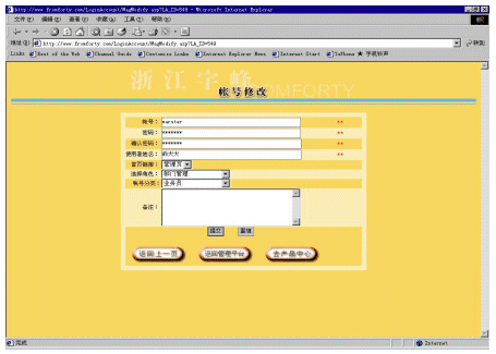帳號系統(tǒng)主要是為適應一個分銷商內部會有多個不同等級的人使用這個系統(tǒng)。對于分銷商而言,它可以建立多個帳號,并為每個帳號分配不同的權限,以及每個帳號可以對應管理不同下屬企業(yè)(參看圖5和圖6)。還可以為不同的帳號提供不同的進入頁面,使得用戶使用更加方便。