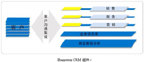 。。作為企業(yè)級(jí)客戶(hù)關(guān)系全面解決方案,Ebanswers CRM包含了可無(wú)縫整合又可獨(dú)立運(yùn)行的三個(gè)功能組件:銷(xiāo)售,營(yíng)銷(xiāo),服務(wù)流程自動(dòng)化軟件系統(tǒng);客戶(hù)溝通集成信息化方案;深層商業(yè)智能分析。其中客戶(hù)溝通層組體是Ebanswers