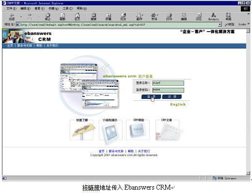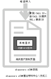 。。Ebanswers CRM整合呼叫中心的這種方式過(guò)程更清晰,當(dāng)有電話呼入系統(tǒng)時(shí),由內(nèi)嵌的OCX控件取到call