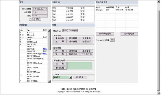 。。利用內(nèi)嵌的OCX控件,星際網(wǎng)絡(luò)已經(jīng)完全實(shí)現(xiàn)了在web頁(yè)面調(diào)用呼叫中心的功能,其主界面如下: