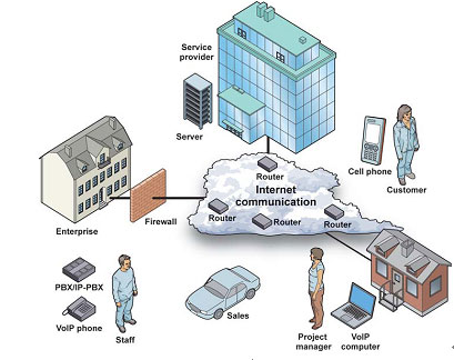 企業(yè)網(wǎng)絡(luò)融合是在互聯(lián)網(wǎng), 固定網(wǎng), 移動網(wǎng)三網(wǎng)合一的基礎(chǔ)上, 由企業(yè)服務(wù)提供商提供的可以控制和管理的融合通信平臺, 將語音、視頻、圖片、文件傳送等功能統(tǒng)一實(shí)現(xiàn)。企業(yè)員工可在不同地點(diǎn), 通過不同終端接入此平臺,內(nèi)部語音通信可以直接通過企業(yè)內(nèi)部IP網(wǎng)絡(luò)進(jìn)行,國內(nèi)外分支機(jī)構(gòu)間語音通信,只需要支付IP網(wǎng)絡(luò)接入的費(fèi)用,不但提供了靈活高效的通信手段, 也節(jié)省了原本高額的通信費(fèi)用。