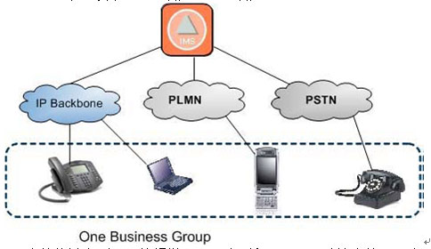與終端的類型和接入方式無關(guān)。企業(yè)或集團(tuán)用戶的成員可以使用不同類型的終端, 通過不同的接入網(wǎng)絡(luò)接入到IMS。在IMS的控制下完成多媒體業(yè)務(wù)的通信過程,實(shí)現(xiàn)虛擬專用網(wǎng)絡(luò)的應(yīng)用。