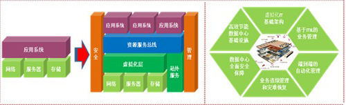 企業(yè)的發(fā)展和業(yè)務(wù)的創(chuàng)新越來(lái)越離不開(kāi)IT技術(shù)的應(yīng)用,傳統(tǒng)的以項(xiàng)目為建設(shè)單元的數(shù)據(jù)中心造成了煙囪式的建設(shè)、分布式的開(kāi)發(fā)、分離式的運(yùn)維,使眾多企業(yè)的 IT 形成了復(fù)雜的、孤立的架構(gòu),信息孤島隨處可見(jiàn),無(wú)法提供靈活、安全和易于擴(kuò)展的應(yīng)用環(huán)境,從多方面影響了業(yè)務(wù)運(yùn)營(yíng)的效果。隨著商業(yè)模式的不斷創(chuàng)新、IT技術(shù)的不斷發(fā)展,業(yè)務(wù)與IT日益密切,傳統(tǒng)的數(shù)據(jù)中心建設(shè)已經(jīng)無(wú)法滿(mǎn)足未來(lái)業(yè)務(wù)發(fā)展的需要,難于部署新的應(yīng)用與服務(wù),設(shè)備利用率低下,業(yè)務(wù)彈性較難,無(wú)法保證系統(tǒng)和應(yīng)用的可用性和可靠性,同時(shí)不斷上升的能源成本和能源需求、機(jī)房空間需求阻礙了業(yè)務(wù)的發(fā)展。