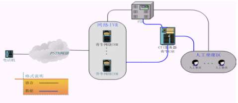 青牛IVR集群方案將原來放在PBX后面的IVR"前移",PBX的LINK只有和坐席相關的信息,大量的和IVR相關的呼叫信息被剝離出去,由青牛網(wǎng)絡IVR直接自行處理。根據(jù)統(tǒng)計,自動業(yè)務的呼叫量在整個客服中心呼叫量中占大多數(shù),當呼叫量越大的時候,該方案的優(yōu)勢就越明顯。