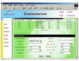 ZINGSERV的一些管理配置工作可由基于WEB的配置程序完成,前面已經(jīng)提到的ACD和IVR的配置就是ZINGSERV管理配置功能的一部分。