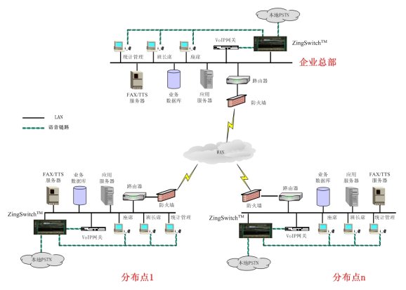 - 各個(gè)分布點(diǎn)的呼入和呼出都直接通過當(dāng)?shù)赝ㄐ欧⻊?wù)商,既保證了語(yǔ)音服務(wù)的質(zhì)量,又減少了系統(tǒng)的通話費(fèi)用。