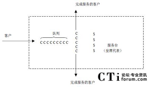 呼叫中心是一個典型的排隊系統(tǒng)。電話一個接著一個到來,接受各種服務。如果一個到達的客戶不能立即接受服務,這個客戶就加入到一個隊列中進行等待,圖示是一個單隊列的排隊模型,如果呼叫中心擁有多個隊列,則需要構造多個上述的排隊模型。