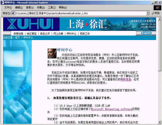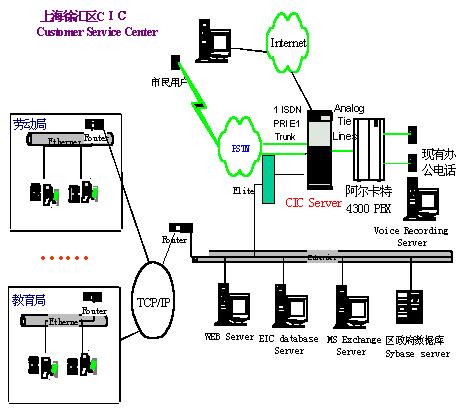 上海市徐匯區(qū)市民咨詢(呼叫)中心的第一期工程包括語音自動(dòng)應(yīng)答IVR、按需傳真Fax on Demand、語音郵件Voice Mail、網(wǎng)頁互動(dòng)Web Interaction、座席屏幕彈出Agent Screen Pop、報(bào)表以及語音記錄等功能。該中心具有以下特點(diǎn),很好地滿足了徐匯區(qū)政府的要求。