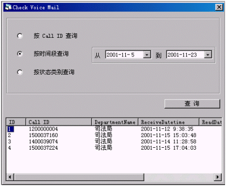 用戶電話進(jìn)入中心,并轉(zhuǎn)至坐席,此時(shí)如果坐席處于忙或非工作時(shí)間,中心會(huì)自動(dòng)提示用戶留言,留言后坐席在一定的時(shí)間內(nèi)給予回復(fù)處理,并在處理的同時(shí)對(duì)所有的語音留言Voice Mail做狀態(tài)分類統(tǒng)計(jì)。中心還對(duì)用戶留言的處理過程進(jìn)行跟蹤,以便防止大量語音留言不能得到及時(shí)處理,影響中心的服務(wù)質(zhì)量。
