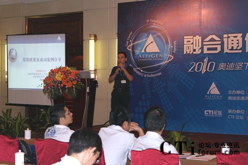 CTI論壇(ctiforum)9月10日消息(記者 楊毅):2010年9月9日奧迪堅(jiān)在廣州市嘉鴻華美達(dá)廣場(chǎng)酒店舉辦的“下一代融合通信平臺(tái)華南研討會(huì)” 圓滿落下帷幕。本次會(huì)議以 “融合通信” 為主題,將最新的由“IPT、IPCC、UC和Mobility”四個(gè)部分組成的融合通信技術(shù)完美呈現(xiàn)在嘉賓眼前,吸引了業(yè)界眾多知名廠商和媒體,并得到了奧迪堅(jiān)在各個(gè)行業(yè)的新老客戶的積極響應(yīng)和參與。通過(guò)奧迪堅(jiān)的精彩主題演講、現(xiàn)場(chǎng)的情景秀表演和眾多案例分享等多種形式,與合作伙伴及嘉賓共同探討融合通信技術(shù)該如何發(fā)展、解讀渠道新政策、同時(shí)更加深入了解奧迪堅(jiān)產(chǎn)品,提高合作伙伴在市場(chǎng)上的競(jìng)爭(zhēng)力。CTI論壇(www.bjrenaitang.com)獨(dú)家承辦此次會(huì)議,并進(jìn)行全程報(bào)道。