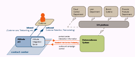 在線銀行要求Altitude Software推薦一個(gè)適合的和集成的解決方案。替代建議昂貴的EAI(企業(yè)應(yīng)用集成)平臺,Altitude推薦使用標(biāo)準(zhǔn)的網(wǎng)絡(luò)服務(wù)技術(shù),與Altitude uCI產(chǎn)品完全兼容。
