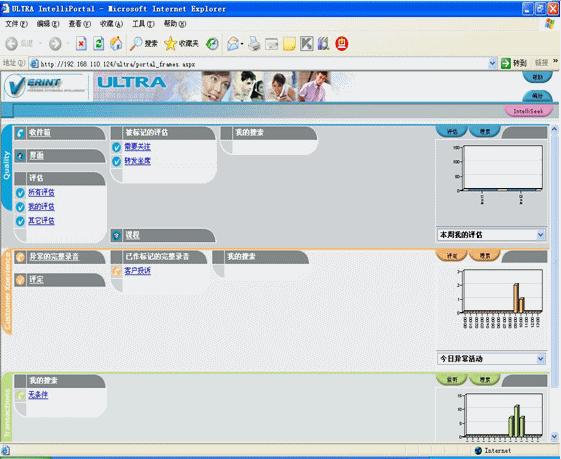 ULTRA Web Portal是一套提供ULTRA商業(yè)應(yīng)用功能的基于瀏覽器的應(yīng)用程序,提供的組件包括:企業(yè)事務(wù)管理、聯(lián)絡(luò)中心質(zhì)量管理、客戶體驗(yàn)管理,IntelliSeek(報(bào)表系統(tǒng)),IntelliFind和IntelliMiner(智能分析組件)。ULTRA Web Portal運(yùn)行在ULTRA平臺(tái)服務(wù)器上(應(yīng)用服務(wù)器)上,用戶通過(guò)IE瀏覽器訪問(wèn),提供在線和歷史的交互管理入口。