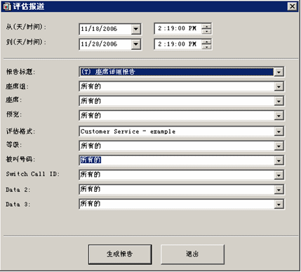 在質(zhì)量管理系統(tǒng)中,用戶可以通過(guò)評(píng)估報(bào)表生成器,定義客戶化的評(píng)估報(bào)表。用戶可以針對(duì)座席的表現(xiàn)生成文字和圖形化的報(bào)表。通過(guò)這些報(bào)表,可以了解需要改善和增強(qiáng)的座席培訓(xùn)內(nèi)容。