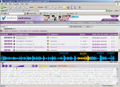 例如: 您的企業(yè)擁有一個(gè)電子商務(wù)網(wǎng)站?蛻艨赡軙(huì)打電話來(lái)就此網(wǎng)站進(jìn)行投訴。使用IntelliFind,您可以在呼叫記錄中搜索如”糊涂”、”網(wǎng)站”、”不喜歡”等關(guān)鍵字,回放這些呼叫來(lái)理解客戶投訴的原因。根據(jù)這些信息,您可以采取改善的方式。
