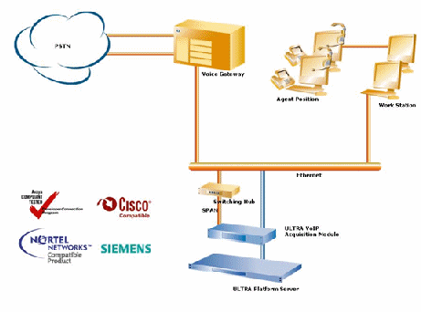 ULTRA通過(guò)VoIP記錄儀來(lái)記錄VoIP呼叫中心環(huán)境中的通話。VoIP記錄儀捕獲相關(guān)語(yǔ)音包并儲(chǔ)存為標(biāo)準(zhǔn)語(yǔ)音文件格式。
