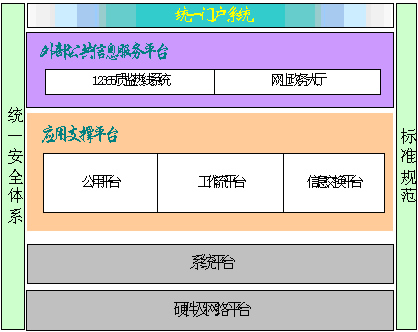 2 )系統(tǒng)基于 J2EE架構(gòu),采取三層結(jié)構(gòu)設(shè)計(jì),分為前端應(yīng)用(外部公共信息服務(wù)平臺(tái))、應(yīng)用支撐平臺(tái)和系統(tǒng)軟硬件平臺(tái),以應(yīng)用支撐平臺(tái)為核心,以安全和標(biāo)準(zhǔn)為保證。