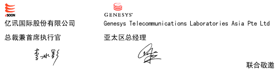 屆時(shí),不僅有Genesys全球總裁率領(lǐng)資深專家向您介紹客戶關(guān)系管理領(lǐng)域的市場(chǎng)動(dòng)向與未來趨勢(shì),還帶來了全球拭目以待、發(fā)熱發(fā)光的Genesys最新產(chǎn)品 ── G7。此外主辦單位更有幸請(qǐng)來兩岸三地知名客戶,提供商務(wù)應(yīng)用實(shí)例,共同分享其成功經(jīng)驗(yàn),為您的企業(yè)及同行業(yè)提供了相互交流的機(jī)會(huì)。