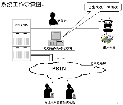 該系統(tǒng)可作為程控交換機銷售商的配套模塊配給新用戶,也可用于電力、院校、企業(yè)集團、政府機關(guān)等已擁有交換機的單位加配電腦話務(wù)員和語音信箱及114查號臺功能。