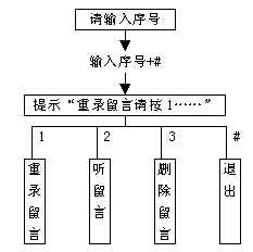 在本系統(tǒng)中只有信箱號碼的概念,在前面的說明中提到分機號碼,是為了讓用戶理解,在通常情況下信箱號碼是與分機號碼一一對應(yīng)的,一般用戶只要記住分機號碼就可以了。如果有些分機沒有開設(shè)信箱,用戶依舊輸入分機號碼時,系統(tǒng)就會提示用戶"信箱號不對"