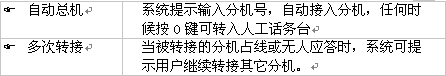 1). 當您撥打總機號碼進入電腦話務(wù)員時就聽到系統(tǒng)提示音"您好!XXX公司,請直撥分機號,查號請撥0"。這句系統(tǒng)提示音可通過管理員訪問由管理員根據(jù)需要自行錄制。參見管理員訪問中的介紹。