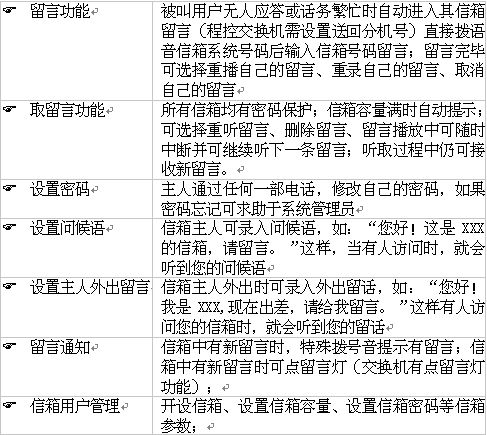 系統(tǒng)信箱號碼:在交換機數(shù)據(jù)庫中設(shè)置,主人或管理員直接訪問時需拔打此號碼。