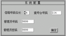 管理員號碼:管理員在系統(tǒng)維護時需拔打的信箱號碼(密碼缺省為9999)。