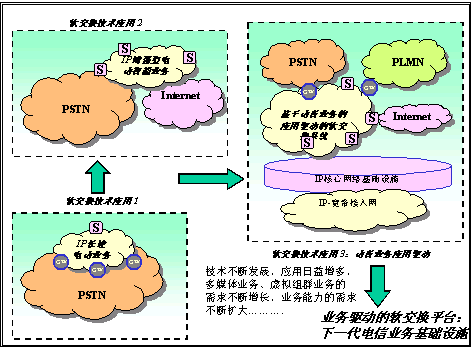 圖1:電信業(yè)務(wù)的發(fā)展需要業(yè)務(wù)驅(qū)動的軟交換平臺的支持