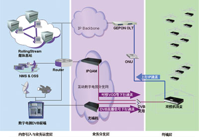 圖1 奔流RollingStream廣電互動數字電視解決方案系統(tǒng)架構