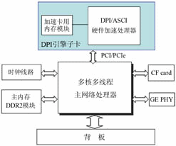 DPI檢測實(shí)際上也是一個計算密集型應(yīng)用,它要求掃描整個數(shù)據(jù)包,計算開銷非常大。傳統(tǒng)網(wǎng)絡(luò)設(shè)備在實(shí)現(xiàn)此功能時大多采用軟件方案,在通用的CPU上進(jìn)行處理,在獨(dú)占一個CPU核的情況下也只能達(dá)到Mbit/s級別的處理能力,不適合電信級的CCG部署。同時,DPI部署的CCG不僅僅是為2.5G/3G移動互聯(lián)網(wǎng)業(yè)務(wù)部署,實(shí)際上LTE業(yè)務(wù)更加強(qiáng)調(diào)多媒體數(shù)據(jù)的業(yè)務(wù)精細(xì)化運(yùn)營與融合,所以CCG的解決方案必須要考慮目前2.5G與3G數(shù)據(jù)業(yè)務(wù)需求與擴(kuò)展,也要考慮以后LTE業(yè)務(wù)的長期部署。