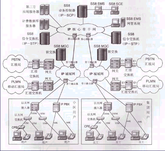 SS8信令交換機(jī)可構(gòu)建全球性的智能化IP網(wǎng)絡(luò)的語(yǔ)音通信交換系統(tǒng),在此網(wǎng)絡(luò)上能夠承載語(yǔ)音、數(shù)據(jù)和視頻圖象通信業(yè)務(wù)。具體見圖1。
