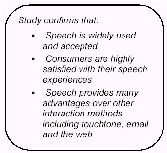 調查結果無可厚非地證明語音服務系統(tǒng)已被大部分消費者接受和使用,并且對其服務有著高度評價,它顯示了其他溝通方式,包括傳統(tǒng)的DTMF按鍵式系統(tǒng),電子郵件及互聯網絡服務等所不能比擬的極度優(yōu)勢。