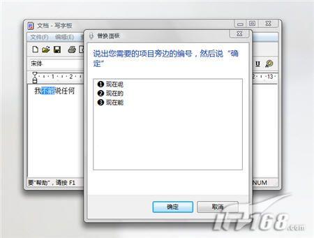Vista在轉譯你的聽寫時很可能會產(chǎn)生錯誤。而只得慶幸的是它們能夠很容易地得到糾正。例如,如果你說“我現(xiàn)在能說任何”,而Vista輸入的是“我不能說任何”,這時你可以說“更正不能”,接著你就會看到一個清單,里面列有可替換的詞,如圖10所示。