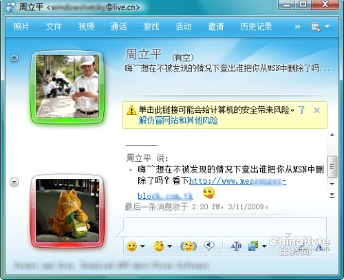 微軟MSN中國市場部總監(jiān)陳嘉榕表示:“微軟MSN始終致力于保護用戶的隱私和賬戶安全,為廣大用戶提供安全無憂的網(wǎng)絡(luò)服務(wù)。隨著軟件的不斷優(yōu)化,越來越多的安全產(chǎn)品被不斷的集成在Messenger平臺之中。但是在技術(shù)不斷進步的同時,我們相信用戶不斷提高的賬戶安全保護意識才是從根本上保證溝通安全的不二法門。對此,MSN將和用戶一同努力,打造純凈的互聯(lián)網(wǎng)人脈圈。”