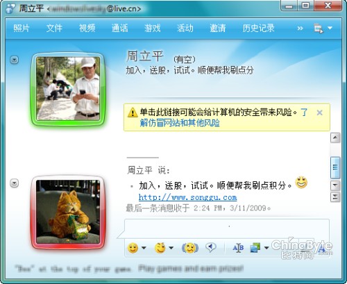 通常來說,用戶成為垃圾信息的目標主要源于用戶泄露賬戶信息。一些未經(jīng)微軟認證的第三方網(wǎng)站在會員注冊程序中為盜取用戶MSN賬號及密碼設(shè)下一個圈套,即要求注冊者提交MSN賬號和密碼。網(wǎng)站獲取到MSN用戶賬號和密碼后,通過架設(shè)的“機器人”服務(wù)器(即一種惡意程序,可通過自動勘測方式,獲取用戶賬號密碼),自動登錄該用戶Messenger,并按好友名單自動傳播垃圾信息鏈接。一旦用戶以為是好友發(fā)送的,點擊這個鏈接后,自己的電腦也會感染,會再繼續(xù)自動向其他好友發(fā)送同樣的廣告信息鏈接,就這樣,呈幾何級數(shù)進行傳播。
