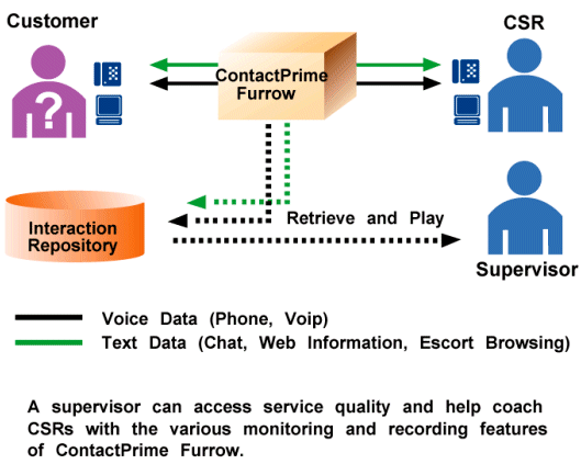 ContactPrime Furrow提供的完全記錄解決方案可以協(xié)助進(jìn)行訓(xùn)練、性能評估、交易驗證與爭議解決等工作。不僅記錄語音呼叫,而且對于聊天、陪同瀏覽和Web互操作等文本行為也可記錄。