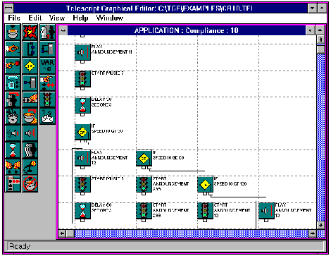 Enterprise 2002 圖形化腳本編輯器軟件工具可供Enterprise 2002的用戶使用。該圖形化編輯器是一種基于圖標(biāo)的呼叫流程管理工具,可用來查看和編輯通信腳本文件中所包含的呼叫流程。該工具為用戶提供了一個(gè)圖形化用戶界面,可使其通過在Windows應(yīng)用中點(diǎn)擊和拖拽鼠標(biāo)來創(chuàng)建和修改腳本文件。在操作過程中,用戶可隨時(shí)以輸入關(guān)鍵詞方式獲得相應(yīng)的幫助信息。