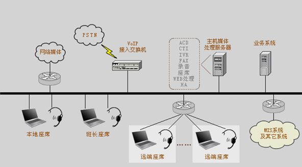我們可以非常明確的一點是:采用分布式座席的技術,使得遠端座席與中心座席除了地域上的差異,其它部分完全相同?梢哉f只要網(wǎng)絡無極限,座席分布就是無極限的。