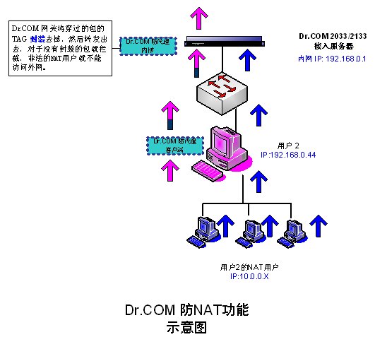 實現(xiàn)的原理類似于VLAN技術,通過客戶端對合法用戶數(shù)據(jù)包動態(tài)地增加一個識別標簽,再由網(wǎng)關對這些數(shù)據(jù)包標識去掉,轉發(fā)到上聯(lián)端口。而非法的用戶,由于數(shù)據(jù)包沒有合法的標簽,被網(wǎng)關過濾掉。不僅能夠對內網(wǎng)用戶進行很好地防代理控制,又不影響局域網(wǎng)和城域網(wǎng)的內網(wǎng)服務器和外部Internet服務器的正常通信。