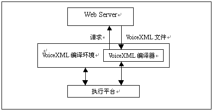 通過(guò)上圖可以看出,用戶根據(jù)自己的業(yè)務(wù)需求和流程書(shū)寫(xiě)VoiceXML格式的文件,對(duì)于需要從數(shù)據(jù)庫(kù)和其他系統(tǒng)獲取的數(shù)據(jù),可以使用Web Scripts(ASP,JSP等)語(yǔ)言訪問(wèn)外部系統(tǒng)以獲取數(shù)據(jù),把這些數(shù)據(jù)合并到VXML的模板中,形成完整的業(yè)務(wù)流程。IVR服務(wù)器負(fù)責(zé)解析和執(zhí)行這些自動(dòng)語(yǔ)音頁(yè)面,完成相應(yīng)的語(yǔ)音業(yè)務(wù)。